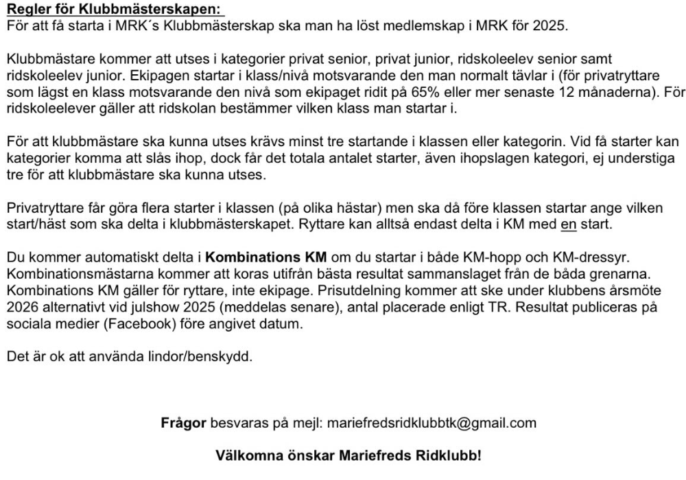 Du prenumererar nu på nyheter från Mariefreds Ridklubb.